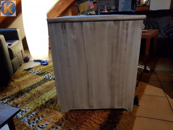 Meuble TVC avec portes vitrées, 2 plateaux et trou à l'arrière pour câblage. Finition vernis anti-taches. Dimensions : long. 95,5 cm prof. 62,5 cm haut. 75 cm